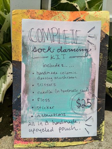 Take your mending on-the-go! Everything you need to darn your socks is all included in this handmade, one-of-a-kind kit. Nothing else like it exists out there!