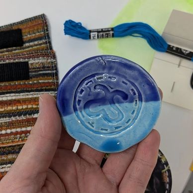 Handmade ceramic clay darning mushrooms come in various colors and have my Sustainable Stitches logo on the back.