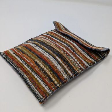 The pouch is made from upcycled Levin Furniture Fabric samples that would have otherwise been discarded. Edges are surged, closure is velcro.